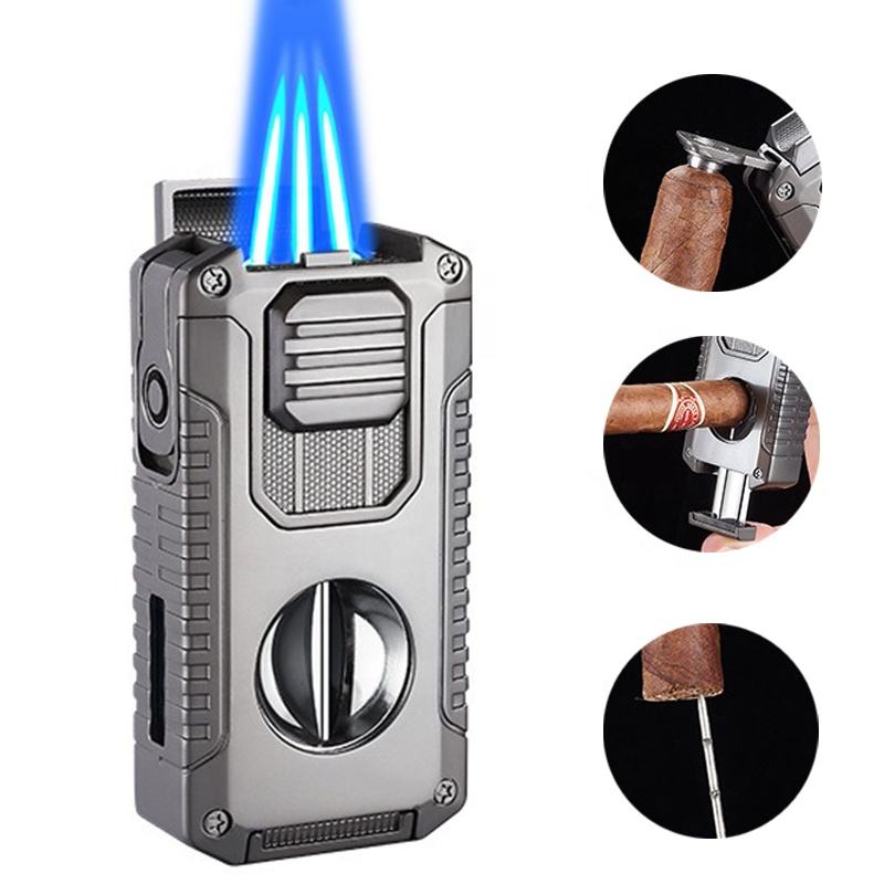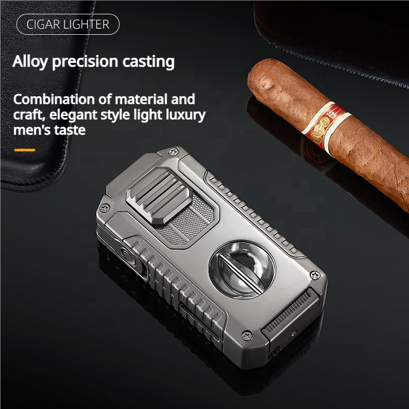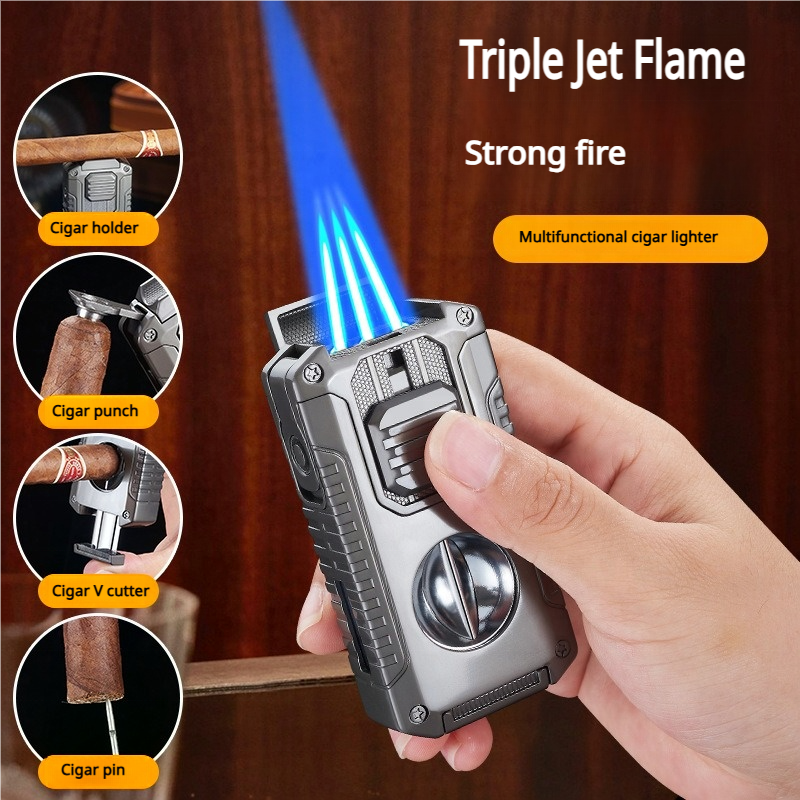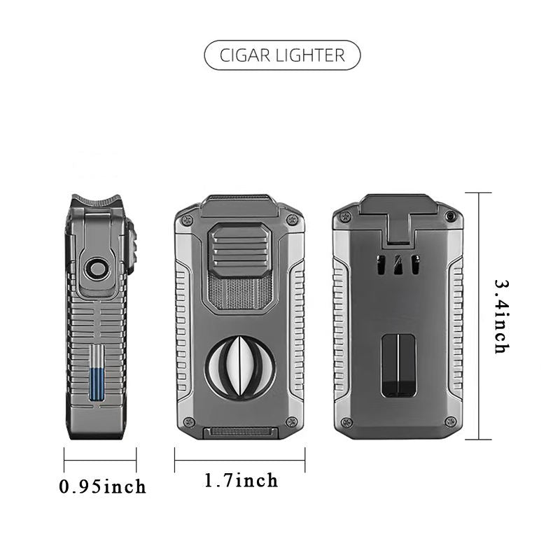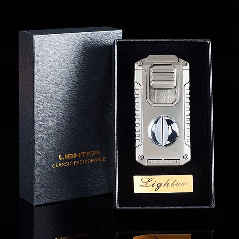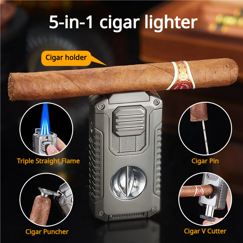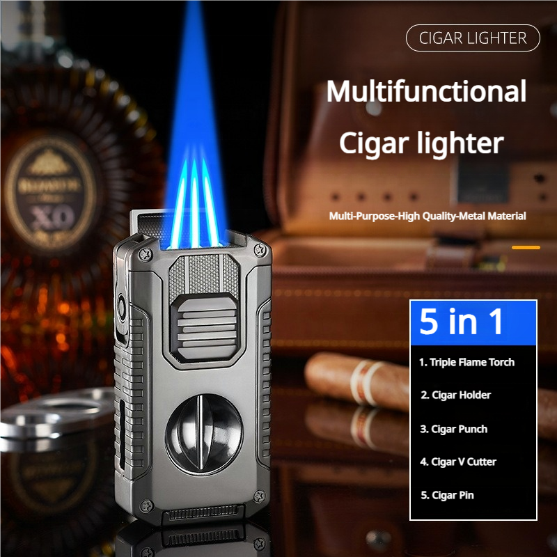 5-in-1 Windproof Metal Lighter with Cigar Cutter & Punch – Premium Multi-Tool Lighter in Gift Box