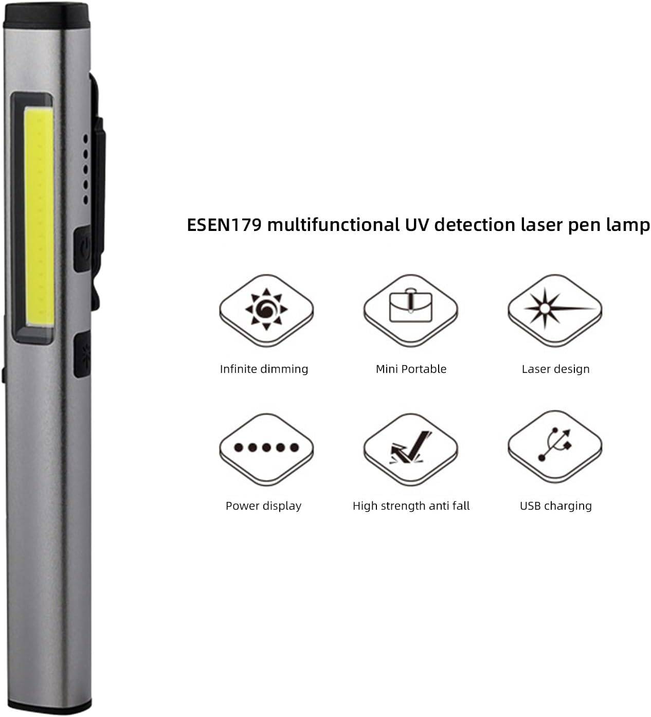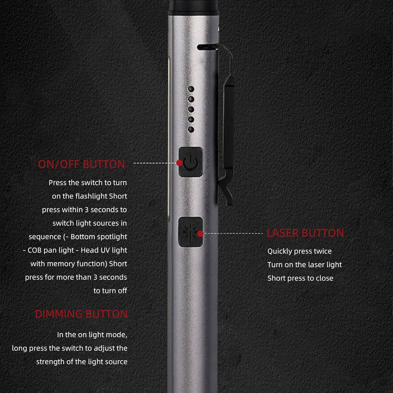 The Multifunctional Pen Light with UV and Laser is a compact, rechargeable lighting tool designed for everyday utility and inspection tasks. Featuring a bright LED light, a 365nm UV light, and a built-in laser function, this pen-style flashlight offers versatile use in a slim, easy-to-carry form. USB-C charging provides convenient power replenishment, while the lightweight design allows comfortable pocket or clip carry. Ideal for home, office, automotive, or general inspection use, this multifunction pen light delivers practical functionality in a portable format.