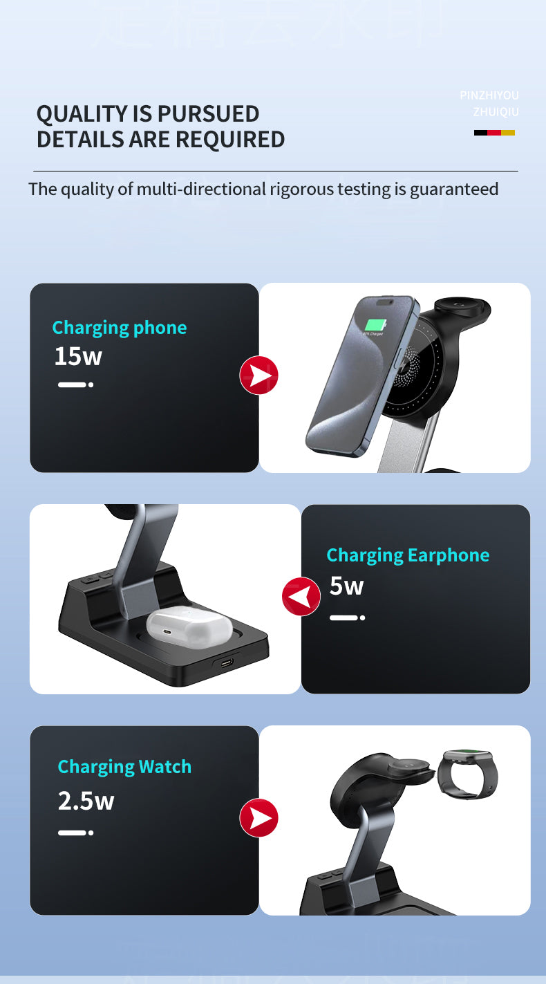 4-in-1 Wireless Charging Station with Alarm Clock – Fast Charging Stand for Phone, Watch & Earbuds (Black or White)