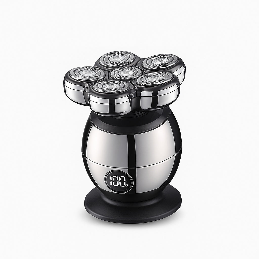 The VUKO RQ8870 delivers a close, comfortable shave with its 7 floating rotary heads, super-sharp dual blades, and fully washable design that makes daily grooming easy. Built with an ergonomic, palm-fit body and a bright LED display, this shaver glides smoothly across the scalp, jawline, and neck for fast, irritation-free results. A long-lasting rechargeable battery provides up to 60 minutes of runtime, while the flexible head system adapts to every contour for a thorough, efficient shave whether you're maintaining a bald look or trimming facial hair.