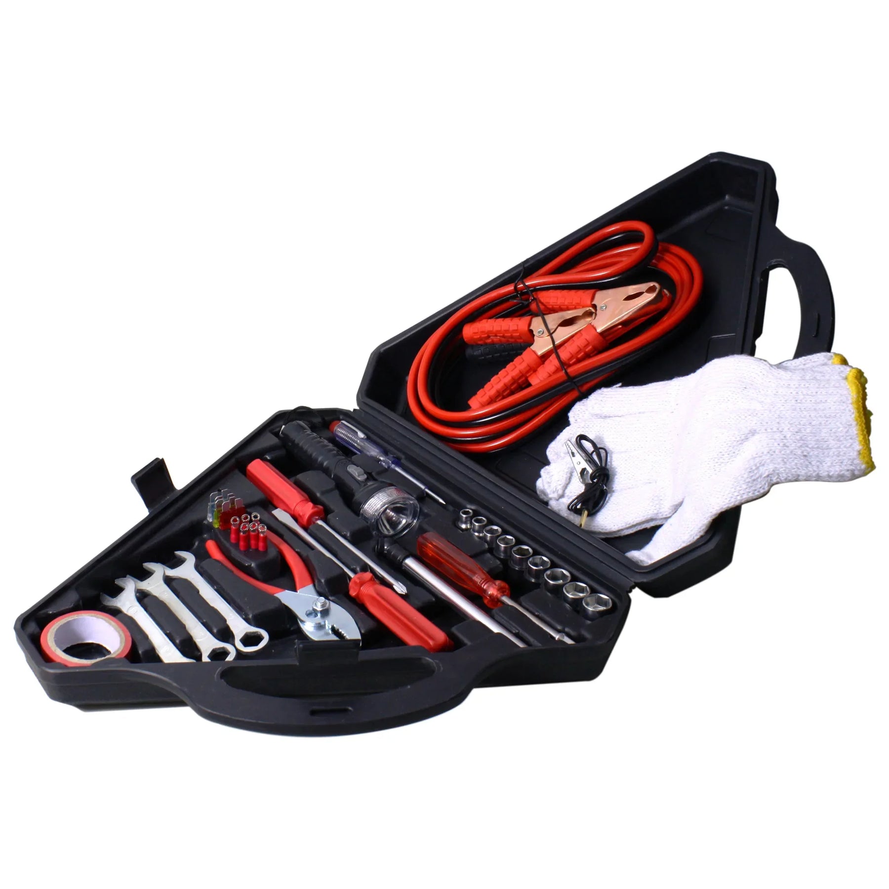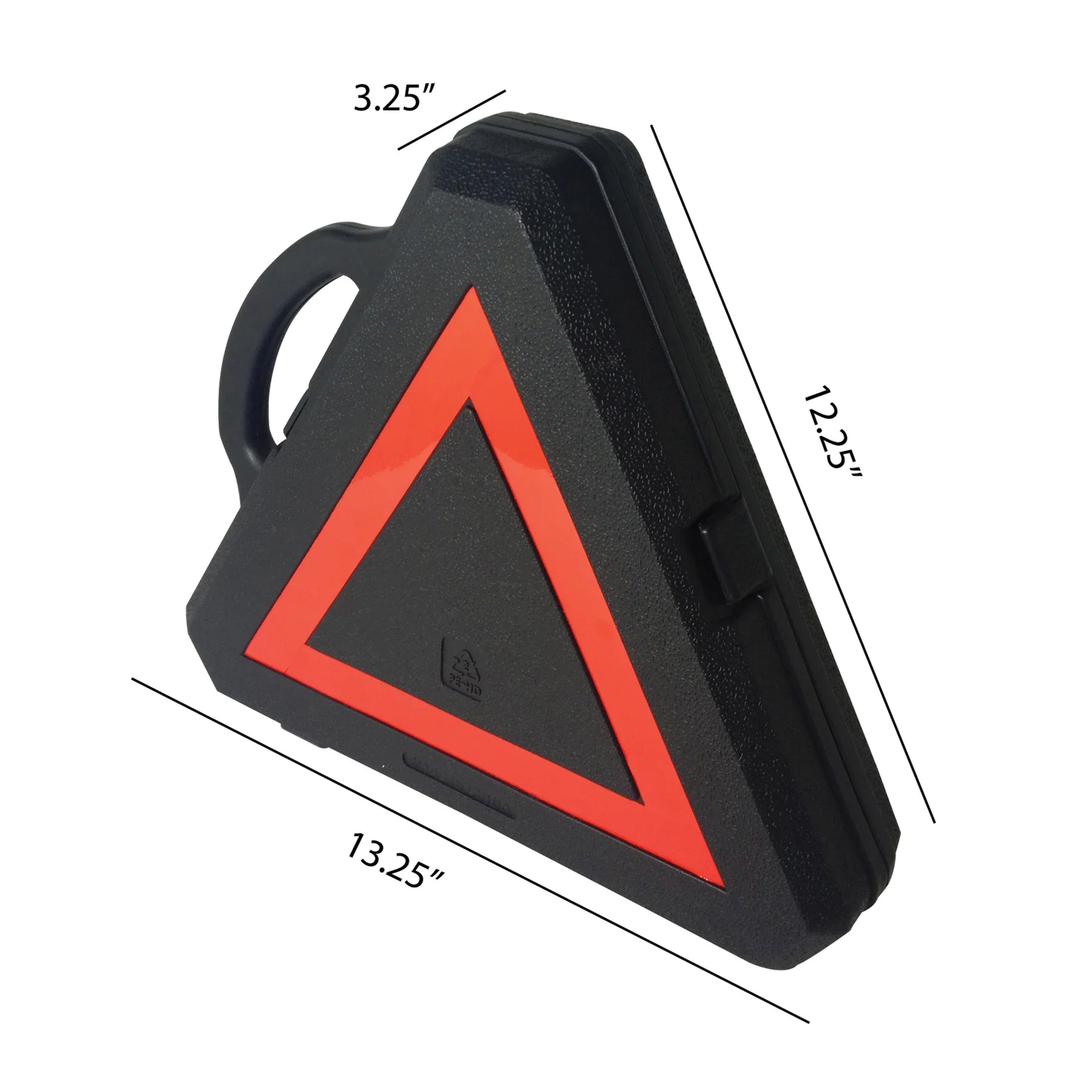 The American Builder 33 Piece Roadside Emergency Kit is a highly convenient set of tools that comes in a triangular mold, which doubles as a reflective caution sign. This car emergency kit with reflective sign is perfect for every commuter, providing all the necessary tools and equipment to deal with emergency car situations. The kit includes pliers, insulated jumper cables, screwdrivers, a tire pressure gauge, socket set, work gloves, and more, ensuring you have everything you need in one place. The roadside assistance kit is compact and easy to store in your car trunk, and the reflective surface ensures visibility in low-light scenarios. With this emergency tool kit for car, you'll be well-prepared for any unexpected event, offering top-tier reliability and convenience.
