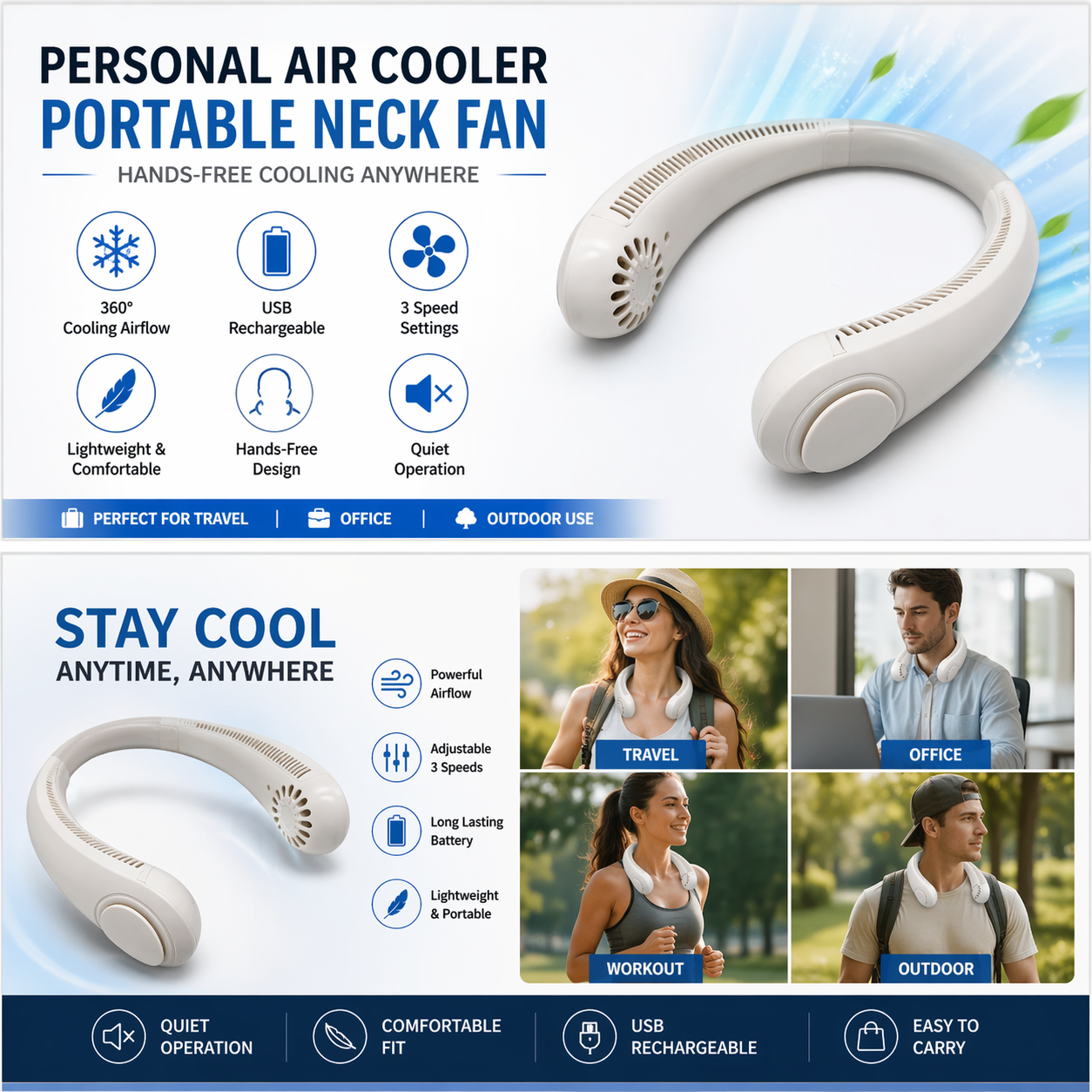 Hands-Free Cooling – Comfortable neck design for easy, portable use